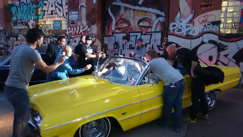 Der wohl bekanneste Lowrider: Ein 64er Chevrolet Impala als Lowrider in der Convertible Version. Bei schönstem Wetter offen zur Trauung:
